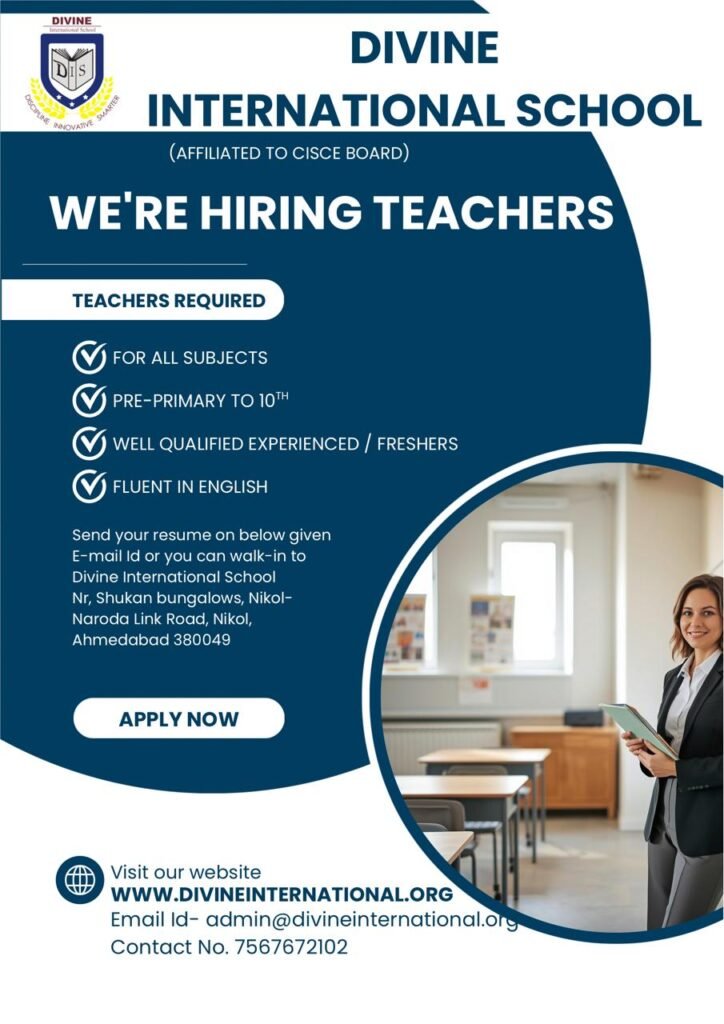 Divine International School was formed in March 2007 to provide infrastructure for value based Education by establishing Educational Institutions to meet growing requirements in and around Nikol, Ahmedabad.
